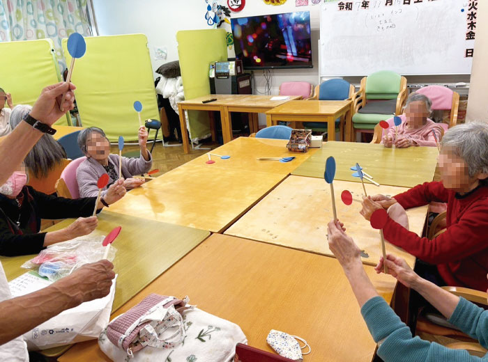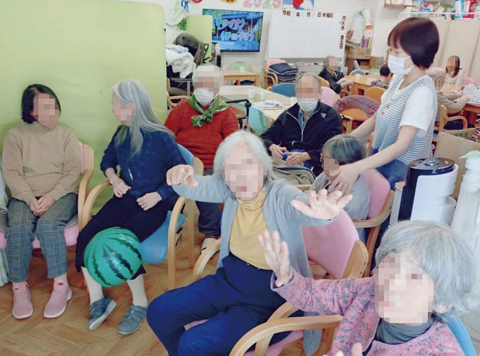 窓の近くに集まりお話されたり、歌を聴きながら歌ったり踊ったり、ボール回しゲームしてみたり、のんびり過ごされました😆