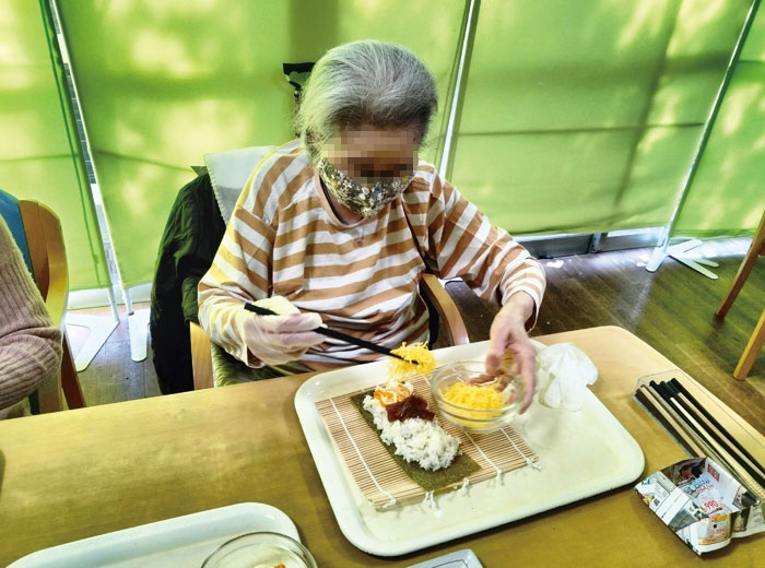 昼食のお時間に皆様それぞれご自身の手で恵方巻きを巻いていただきました。