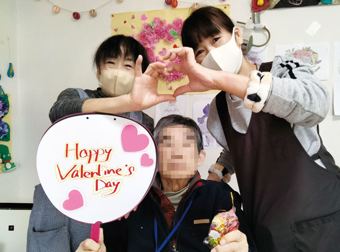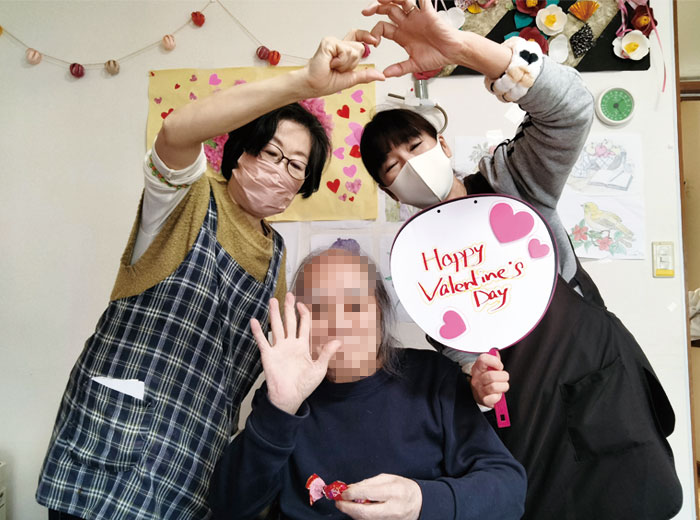少し照れくさそうにされる方や手にした途端に早速取り出しチョコレートを頬張る方や普段とは少し違う表情に施設全体が和やか雰囲気に包まれました。